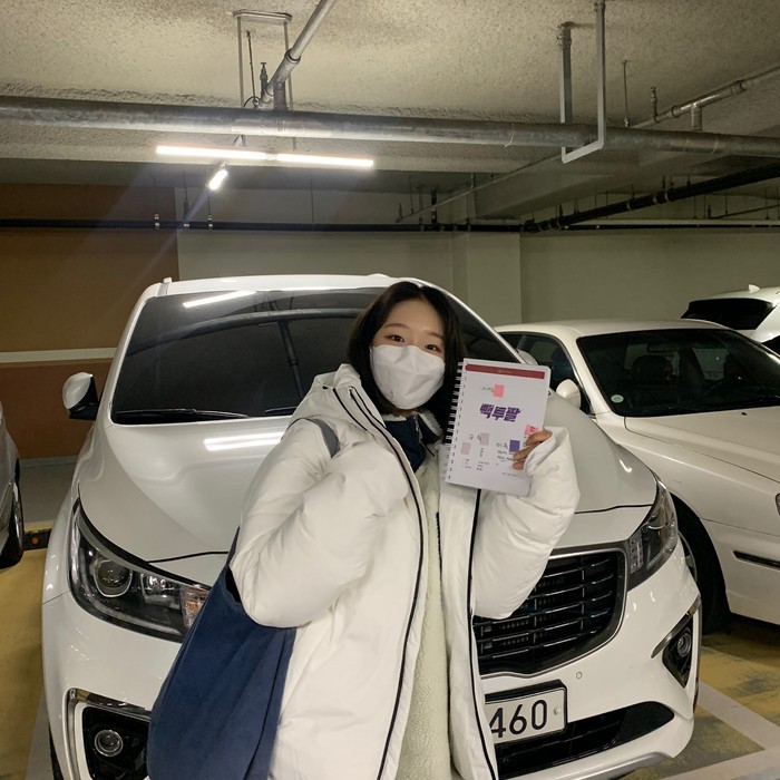 공개된 사진 속 구슬은 검은색 단발의 헤어스타일로 파격 변신해 손에는 대본을 들고 수줍은 듯한 포즈를 보이고 있다