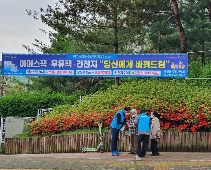 ‘당신에게 바꿔드림’사업은 자원 재활용 사업으로 깨끗하게 세척하며 건조된 아이스팩 20개를 가져오면 종량제 쓰레기 봉투(20L) 1개로 교환해주고, 이렇게 수거된 아이스팩은 그루 가맹점 협약을 체결한 골목 상가에 수요처 조사를 통해 배부할 예정이다. 아이스팩 수거 사업은 매주 금요일 진행된다.