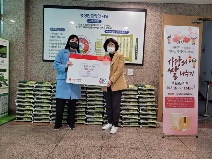 [부자동네타임즈 김인수기자] 고양시 일산서구 대화동 행정복지센터(동장 김학배)가 지난 23일 관내 일산풍성한교회로부터 사랑의 쌀 50포(10kg/1포)를 후원 받았다.