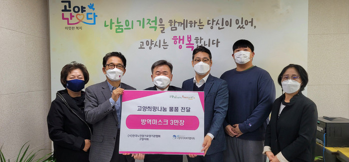[부자동네타임즈 김인수기자] 고양특례시(시장 이동환)는 지난 24일 (사)한국노인장기요양기관협회 고양지회에서 노인장기요양기관에 방역마스크 3만장을 기부했다고 밝혔다.