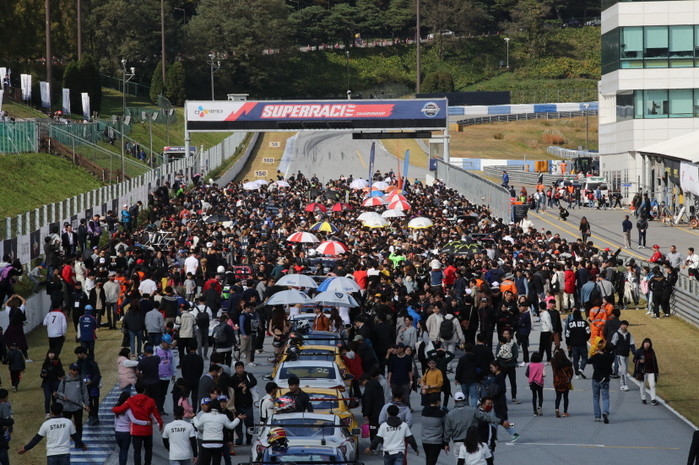 [사진설명] 2019년 수만 관중이 몰렸던 슈퍼레이스 챔피언십 개막전의 그리드워크 이벤트 모습.