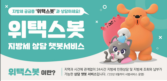 지방세 상담 챗봇서비스는 재산세, 취득세 등 지방세 주요 세목에 대한 납부시기와 납부방법, 감면정보 등을 24시간 자동으로 상담.안내해 주는 대화형 서비스이다.