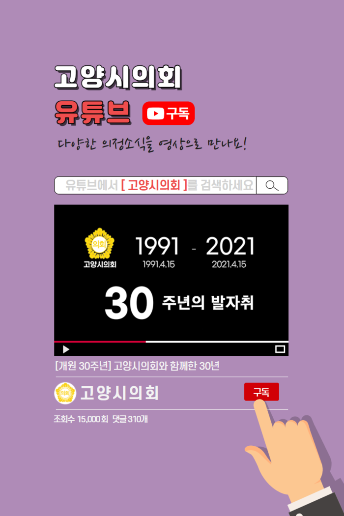 [부자동네타임즈 김인수기자] 고양시의회(의장 이길용)가 7월 1일부터 시민들과 소통 통로를 확대하기 위해 유튜브와 페이스북 등 의회 공식 소셜네트워크서비스(SNS) 채널을 개설하여 주민들에게 다양한 소식을 발 빠르게 전한다고 밝혔다.