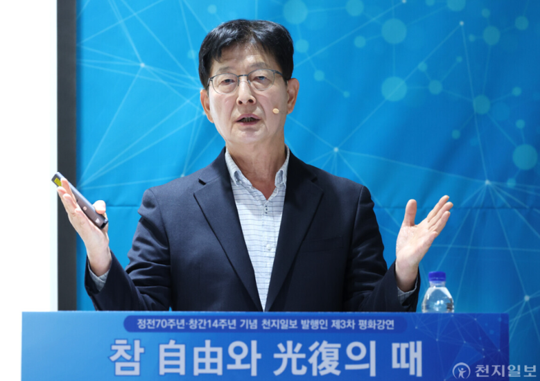 정전70주년·창간14주년을 맞아 이상면 천지일보 발행인이 24일 3차 평화강연을 진행했다.