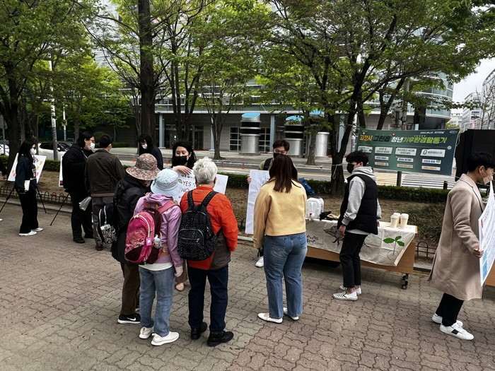 [부자동네타임즈 김인수기자] 고양시 청년기후환경활동가(그린홉)과정에 참여중인 청년 18명이 4월 22일 일산동구 일산문화공원에서 기후위기 대응을 위한 시민 실천을 촉구하는 지구의 날 캠페인을 실시했다.