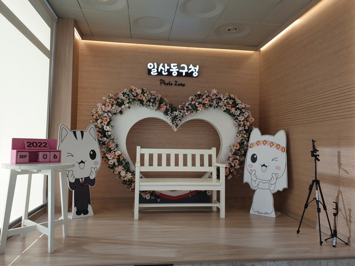 2022년 계절별 조화장식과 고양이 캐릭터로 새단장한 ‘일산동구청 포토존’은 혼인·출생·개명 등 가족관계등록 신고를 마친 민원인이 특별한 날을 기념하기 위해서 자주 이용하고 있다.