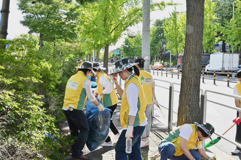 | ▲ 신천지자원봉사단 강서지부 봉사자들이 강서구 외발산동 일대에서 거리 청소 봉사를 하고 있다. [사진 제공 = 신천지자원봉사단 강서지부] |