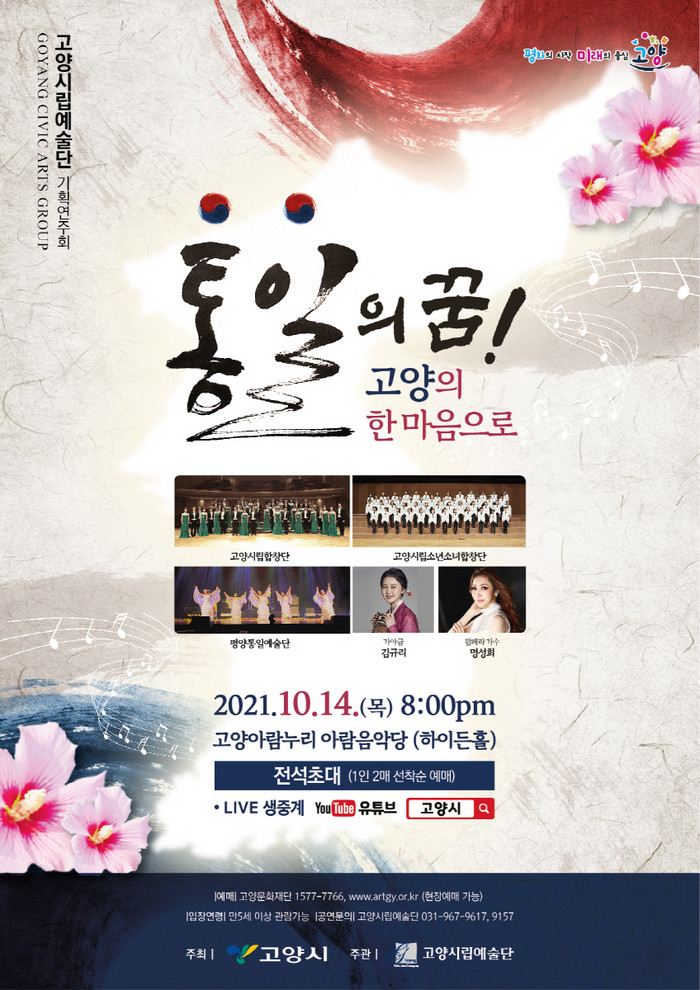 [부자동네타임즈 김인수기자] 고양시 시립예술단의 기획 연주회 통일의 꿈! 고양의 한 마음으로가 오는 10월 14일(목) 저녁 8시 고양아람누리에서 개최된다.