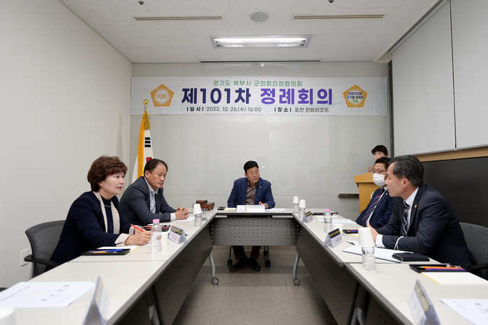 [부자동네타임즈 김인수기자] 경기도북부시ㆍ군의장협의회(회장 고양특례시의회 김영식 의장)는 10월 26일 포천시 소재 한화리조트 회의실에서 제101차 정례회의를 개최했다.