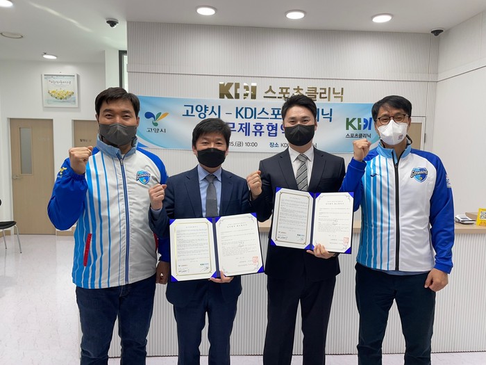 [부자동네타임즈 김인수기자] 고양시청 직장운동경기부가 덕양구에 위치한 스포츠전문재활치료센터인 ‘KDI스포츠클리닉’과 15일 업무협약을 체결했다.