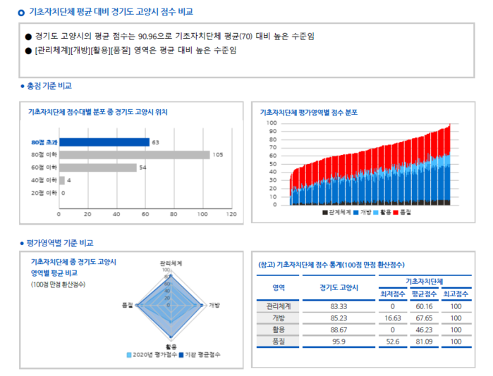 [부자동네타임즈 김인수기자] 고양시는 "행정안전부 주관 ‘2020년 공공데이터 제공 운영실태 평가’에서 우수기관으로 선정됐다."고 26일 밝혔다.