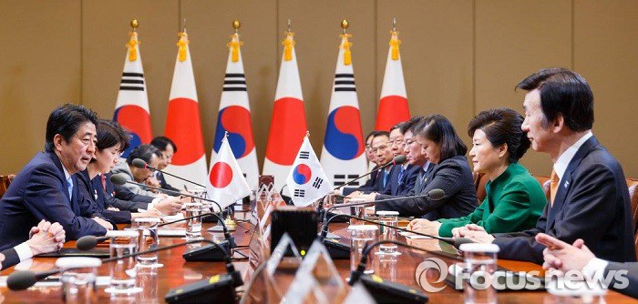 (서울=포커스뉴스) 박근혜 대통령과 아베 신조(安倍晋三) 일본 총리가 한일 확대정상회담에서 4가지 경제부문에 합의했다.