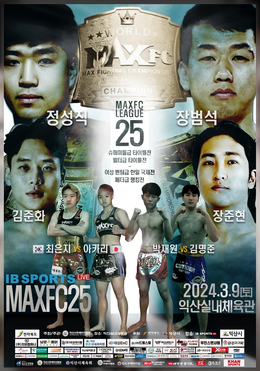 [부자동네타임즈 = 김인수 기자] 국내 최대 입식격투기 단체 MAX FC(대표 이용복)가 오는 3월 7일 익산실내체육관에서 열리는 ‘MAXFC 25 IN 익산’ 대회의 전 경기를 확정하고 종합격투기 대회사 더블지FC와 합동이벤트를 개최한다고 발표했다.