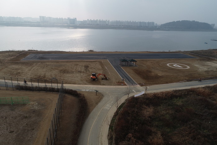 2,400㎡ 활주로의 아스콘포장 등 1차 공사가 지난해 12월 완료됐으며, 현재는 휀스 설치 등 마무리 공사가 진행 중이다. 추후 화전드론센터와 연계하여, 대덕 드론비행장을 서울·경기북부 최초의 TS교통안전공단 드론자격증 실기 시험장으로 등록할 예정이다.