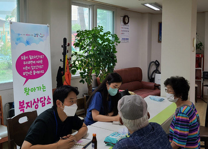 [부자동네타임즈 김인수기자] 고양시 덕양구 흥도동(동장 김선미)은 공공임대 아파트에 거주하는 주민들과 코로나19 여파로 우울증을 겪는 등 심신이 지쳐있는 홀몸 어르신, 고령자들을 대상으로 지난 13일 원흥동 소재 도래울마을 1단지 주민공동시설 내에서 ‘제 7차 찾아가는 복지상담소’를 운영했다.