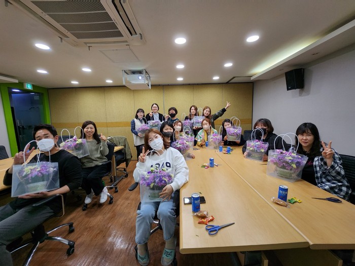 원예 활동에 참가한 직원은 “상담업무에서 잠깐이나마 떨어져 나만의 꽃바구니를 만들다보니 마음이 한결 가벼워졌다”고 만족감을 전했다.