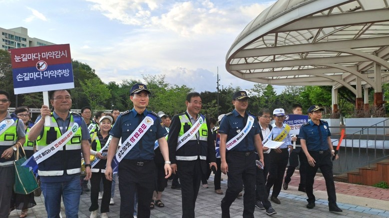 이후 파리공원에서 시작하여 행복한 세상 뒷길, 현대백화점을 거쳐 오목공원으로 이어지는 거리 행보를 통해 마약의 위험성을 알리는 전단지와 볼펜 및 물티슈를 배포했다.