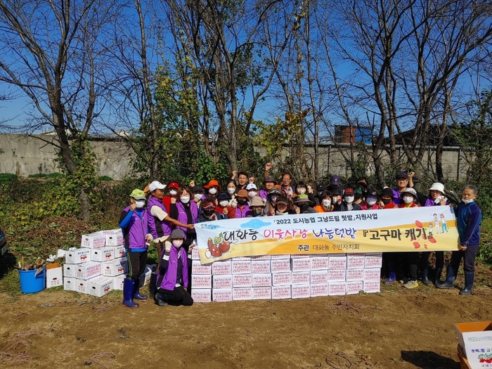 김희정 대화동 주민자치회 간사는 “많은 분들의 관심과 노력 덕분에 고구마를 수확하기까지 큰 어려움 없이 진행할 수 있었고 이런 노력이 우리 주변의 취약계층에 삶의 희망을 줄 수 있으면 좋겠다”고 하였다.
