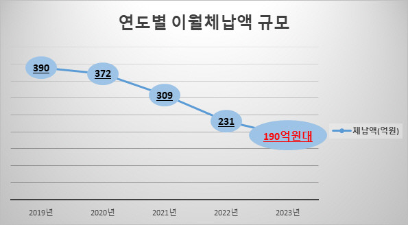 [사진설명] 고양시 차량과태료 연도별 이월체납액.