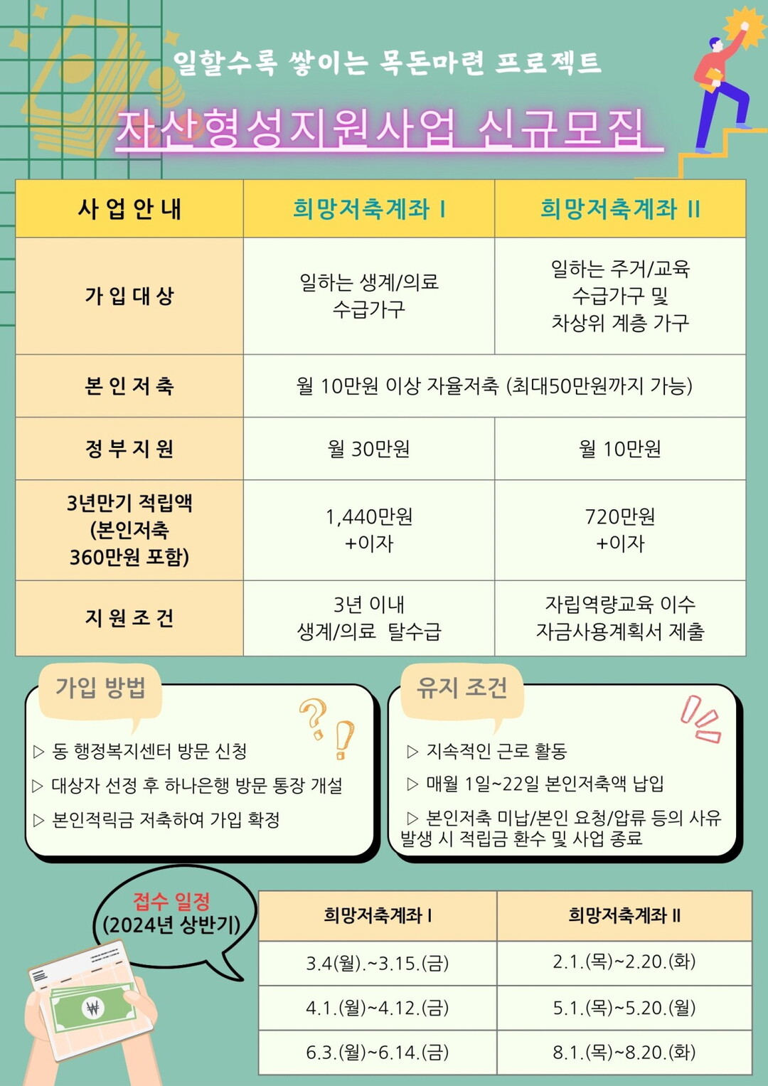 [부자동네타임즈 = 김인수 기자] 고양특례시는 저소득층의 자산형성 및 자립을 돕기 위해 2024년 희망저축계좌Ⅰ.Ⅱ 신규 참여자를 모집한다고 8일 밝혔다