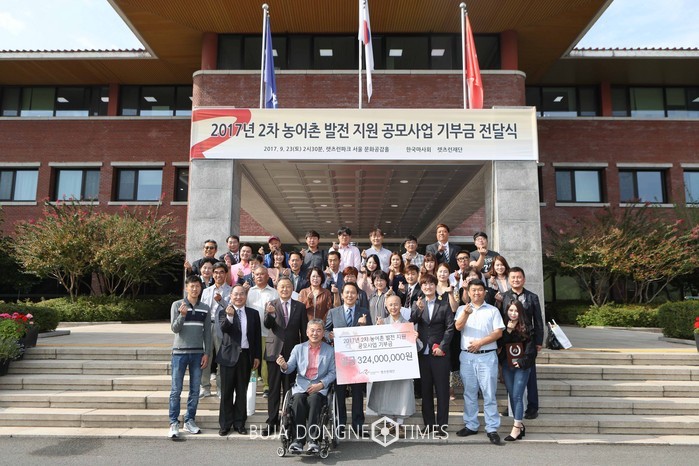 [부자동네타임즈 신동현 기자]한국마사회(회장 이양호) 렛츠런파크 서울 본관 대회의실에서 기부금 전달식이 열렸다. 이양호 한국마사회장 겸 렛츠런재단 이사장, 김학신 렛츠런재단 사무총장이 참석한 가운데, ‘렛츠런재단과 함께하는 2017년 제2차 농어촌 발전지원 공모사업’에 최종적으로 선정된 31개 단체에 기부금 약 3억 2천 4백만 원을 전달했다.