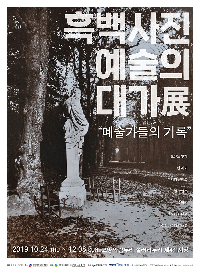 [부자동네타임즈 김인수기자] 고양문화재단(대표이사 정재왈)은 문화체육관광부와 한국문화예술회관연합회의 「2019 미술창작 전시공간 활성화지원사업」의 일환으로 <흑백사진예술의 대가 展 - “예술가들의 기록”>을 오는 12월 8일까지 고양아람누리 갤러리누리 제4전시장에서 개최한다.
