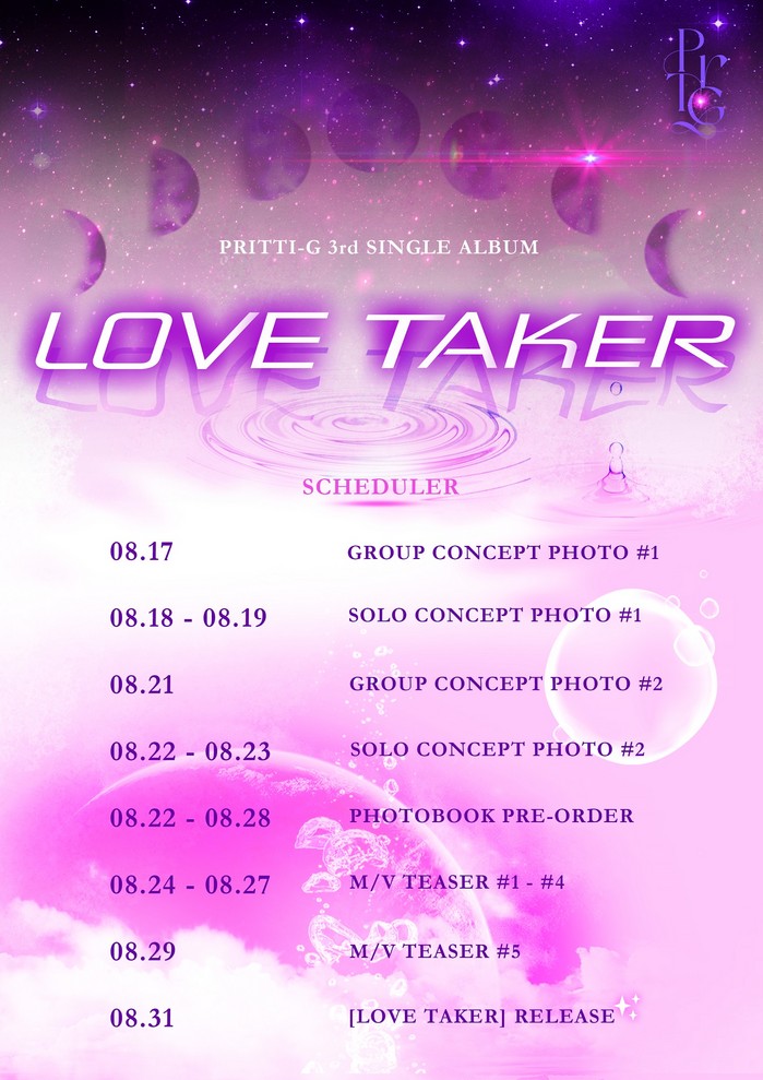 소속사 엔터로뱅은 지난 15일 프리티지 공식 SNS를 통해 세 번째 싱글 앨범 'LOVE TAKER(러브 테이커)' 스케줄러를 공개하고 오는 31일 오후 6시 컴백을 공식 발표했다.