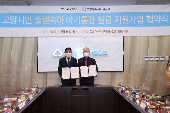 이번 협약은 2022년 고양시에서 1월~ 6월 중 출생한 아동 명의로 고양동부새마을 금고를 방문해 통장을 개설하면 최대 10만원의 출생축하금을 지원하기 위해 체결됐다.
