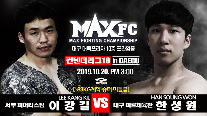 [부자동네타임즈 김인수기자] 이강길(35, 대구 서부 피어리스짐)과 한성원(23, 대구 미르)이 대구 입식 중량급 최강자를 놓고 겨룬다. 10월 20일 대구 대백프라자 10층 프라임홀에서 열리는 'MAX FC 컨텐더리그 18'에서 이들은 83kg 계약 체급으로 대결을 벌인다.