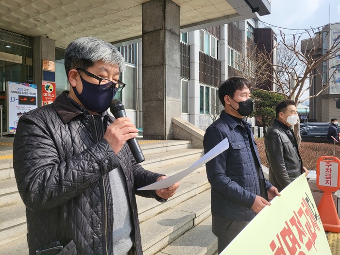[부자동네타임즈 김인수기자] 고양시와 파주시의 건강한 정치지형의 정립을 표방하는 P-플랫폼.고양파주(수석대표 : 김성호, 파주대표 : 김승묵)는 3월 15일, 오전11시 고양시청 영상회의실에서 기자회견을 갖기로 했으나 전날 고양시청의 애매한 태도로 회견장 사용을 거부당하자 시청본관 계단 앞에서 기자회견을 강행했다.