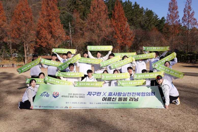 [전주= 세계타임즈 = 이영임 기자] 환경과 세대공감의 가치를 함께 실천하는 러닝 캠페인 ‘지구런(Earth Run)’이 지난 29일 전주에서 ‘세대공감 돌봄 러닝 캠페인’을 통해 첫발을 내디뎠다. 이번 프로젝트는 지역 독거노인의 정서적 안전망을 강화하고, 청년들의 참여형 사회공헌 문화를 확산하기 위해 마련됐다.
