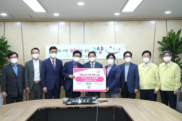 [부자동네타임즈 김인수기자] 고양시는 "지난 6월 22일 (주)아우라7에서 코로나19 감염 예방을 위해 방역마스크 30만 매(1억 8백만 원 상당)를 기부했다."고 밝혔다.