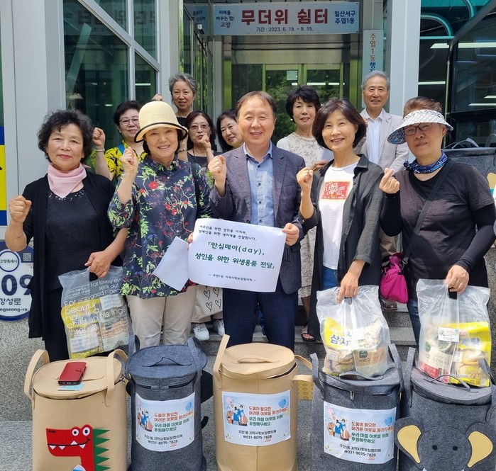 ‘주엽1동 안심데이’은 위생용품 선물세트(성인용 기저귀, 생리대 3개월 사용분량)를 구입하여, 관내 취약계층 가구 중 배변조절에 어려움이 있는 남녀 어르신과 중장년 장애인 가구에 전달하는 사업이다.