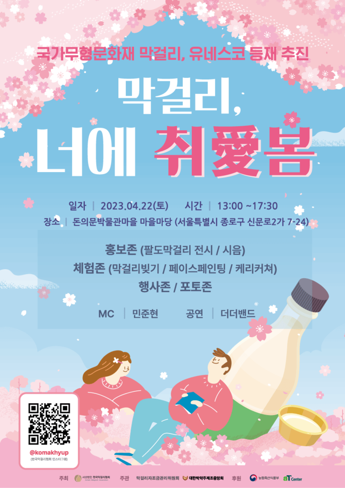 [부자동네타임즈 김인수기자] 막걸리 자조금 관리위원회 (사단법인 한국막걸리협회 / 대한탁약주제조중앙회)가 오는 4월 22일 돈의문박물관마을 일원에서 '막걸리, 너에 취愛봄' 이라는 주제로 막걸리 행사를 개최한다.