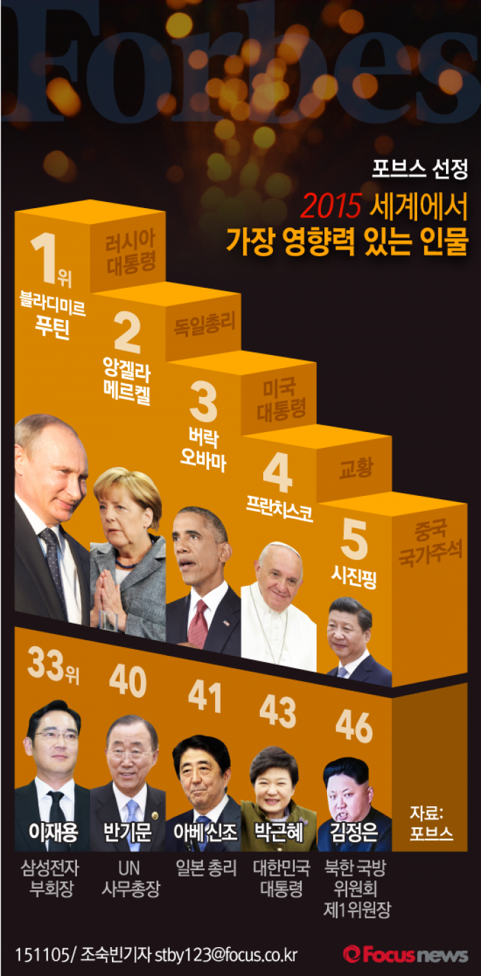 아래는 포브스가 발표한 '2015 세계에서 가장 영향력 있는 인물' 순위다.