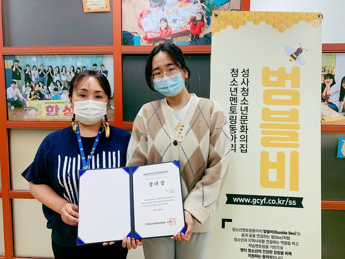 이번 전국중고생자원봉사대회는 다양한 봉사활동으로 이웃에게 나눔을 실천하고 청소년자원봉사자들을 발굴해 격려하는 시상프로그램으로 서류 심사 등의 단계를 거쳐 청소년멘토링동아리 범블비 3기 서채린(성사고 2학년) 청소년이 수상했다.