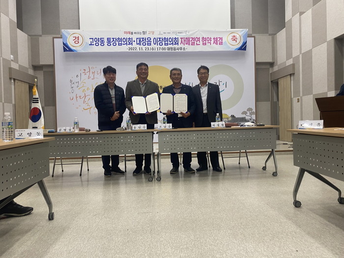 [부자동네타임즈 김인수기자] 고양특례시 고양동 통장협의회는 지난 23일 서귀포시 대정읍 이장협의회와 자매결연 협약을 체결했다. 양 단체는 지역축제·특산물 홍보 등 지역 경제 활성화와 공동발전의 이익을 도모할 방침이다.
