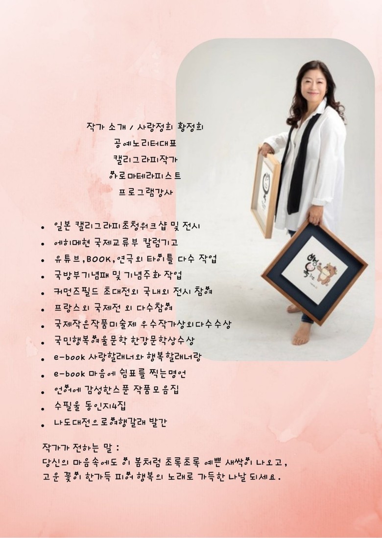 "안녕하세요. 캘리그라피 작가 황정희입니다.