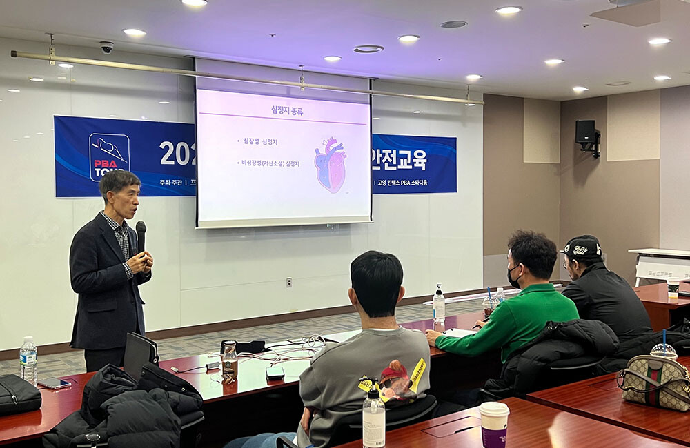 이번 교육은 PBA투어를 운영하는 경기원들과 심판들의 의료 응급 상황 대처 능력을 향상시키고, 경기장 내에서 발생할 수 있는 안전사고 예방 및 대처 능력을 기르기 위해 마련됐다. 교육에는 PBA 전용구장 인근에 위치한 일산소방서 생활안전팀의 강사진이 나서 약 3시간 동안 강의를 진행했다.