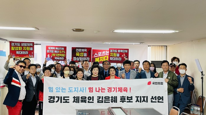 [부자동네타임즈 김인수기자] 경기도 체육인들이 김은혜 국민의힘 경기도지사 후보 지지를 선언했다.