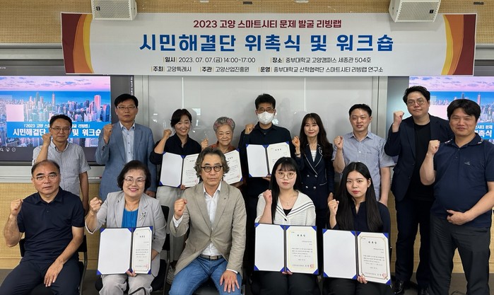 ‘시민해결단’은 지난 7일 중부대학교에서 위촉식을 진행했으며, 워크숍을 통해 제안 내용을 발표하고 스마트시티의 고양시 도입방안 및 리빙랩 운영을 위한 교육을 수강하는 것으로 첫 활동을 시작했다.
