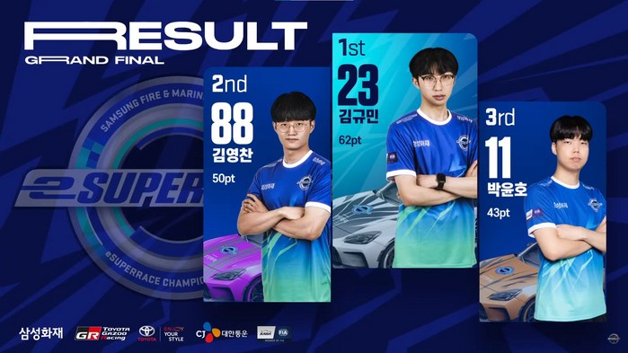 [부자동네타임즈 김인수기자] 게임으로 장벽을 허물며 모터스포츠의 즐거움을 전한 ‘2022 삼성화재 e슈퍼레이스 챔피언십’이 지난 8월 31일(화) 진행한 그랜드파이널에서 최종 우승자 김규민(20)을 탄생시키며 대단원의 막을 내렸다. 지난 6월부터 시작된 온라인 선발전을 통과한 총 36인의 드라이버들이 2달간 치열한 레이스를 펼치며 꿈을 향한 여정을 마무리했다.