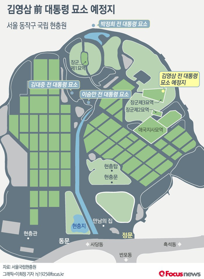 | △ 김영삼 전 대통령의 묘역이 서울 동작동 국립서울현충원 제3장군묘역의 우측 능선에 마련될 예정이다. 김영삼 전 대통령의 묘소는 제2장군묘역의 아래쪽에 마련될 것으로 보인다. |