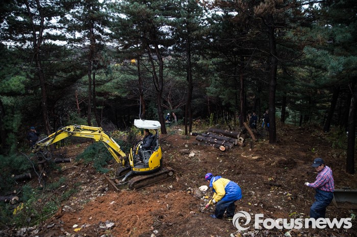 | △ 23일 오전 서울 동작구 국립현충원 제3장군묘역 인근에서 인부들이 김영삼 전 대통령의 묘가 들어설 자리에서 주변 수목을 쳐내는 작업을 하고 있다. <사진제공=포커스뉴스> |