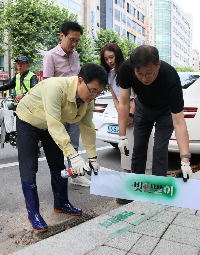 이러한 문제점을 효율적으로 개선하기 위해 재난안전 담당 공무원들은 경계석에 유성 페인트를 분사하는 방식의 가장 단순하면서도 효과가 빠른 ‘빗물받이 표식’ 아이디어를 냈으며, 최소의 예산으로 최대의 효과를 거두는 방안을 찾고자 노력한 결과다.