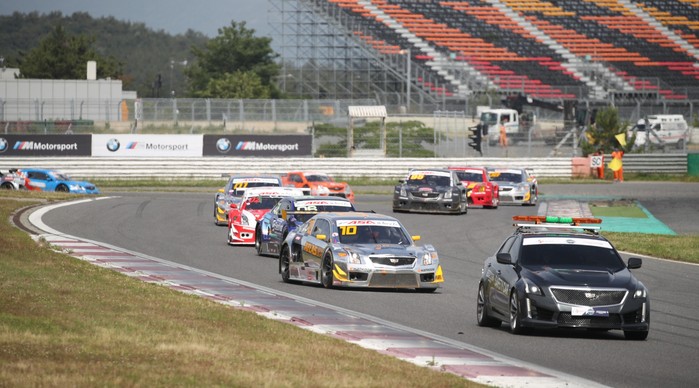 [사진설명] 지난해 전라남도 영암군의 코리아인터내셔널서킷에서 열린 CJ대한통운 슈퍼레이스 챔피언십 3라운드 ASA 6000 클래스 결승전에서 사고로 인해 세이프티카가 투입돼 속도를 제한하고 있다.