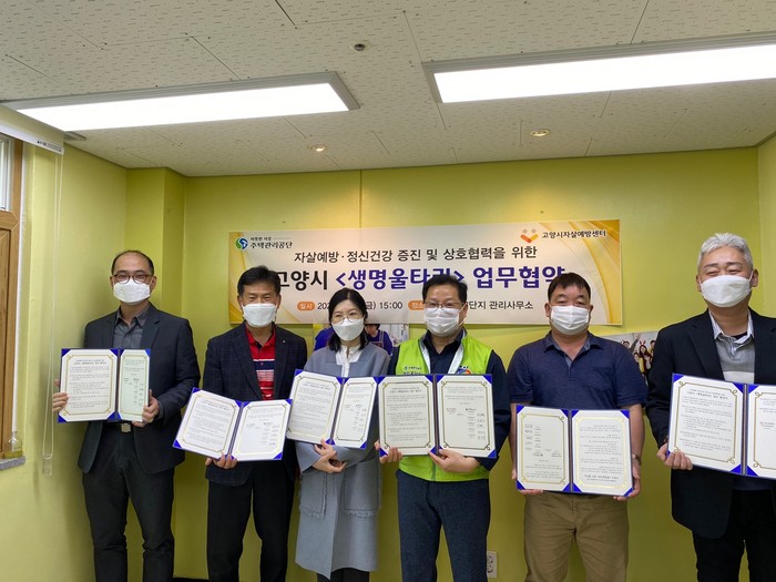 [부자동네타임즈 김인수기자] 고양시는 자살 예방 및 정신건강 증진을 위해 고양시 소속 주택관리공단 5개소와 지난 7일 ‘생명울타리’업무 협약을 체결했다. 5개소는 일산문촌 7단지, 일산문촌 9단지, 일산흰돌 4단지, 능곡샘터 2단지, 능곡샘터 3단지다.