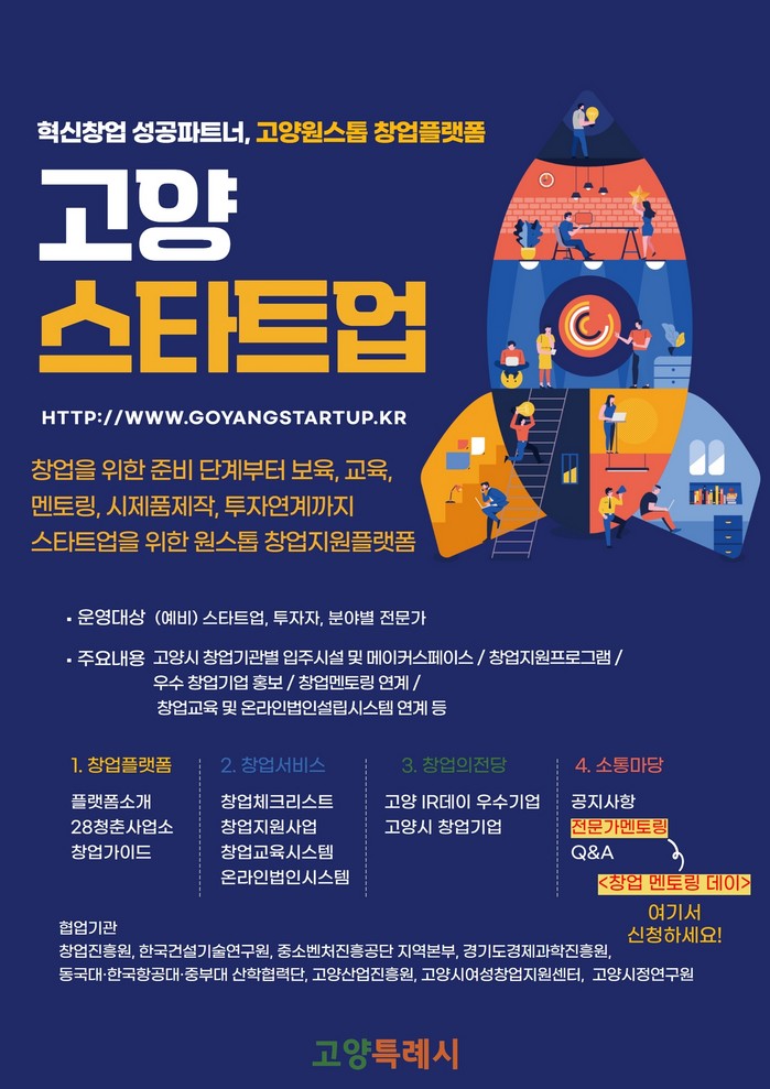 창업멘토링 관련 더 자세한 내용은 고양특례시 누리집 및 원스톱창업플랫폼 누리집에서 확인할 수 있다.