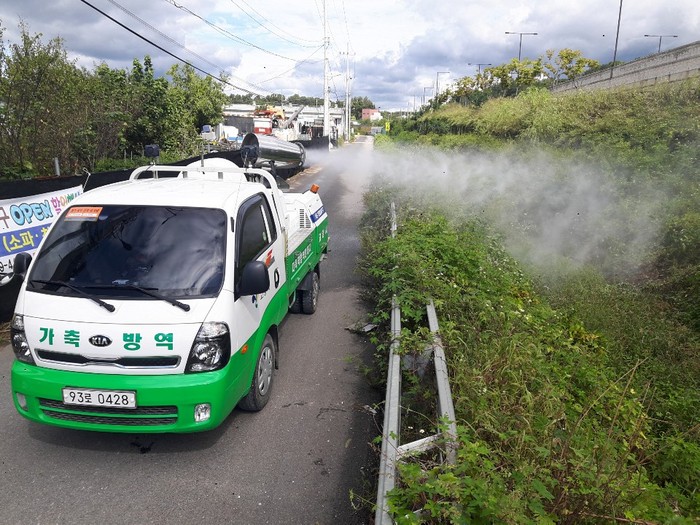 또한 거점소독시설을 덕양구 원흥동, 일산서구 대화동에 각 1개소씩 24시간 운영해 불가피하게 농장에 출입하는 차량, 사람을 대상으로 소독을 실시하고, 아프리카돼지열병 확산 방지를 위해 농장 입구에 방역초소를 설치해 운영 중이다.