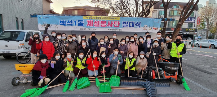 [부자동네타임즈 김인수기자] 고양시 일산동구 백석 1동 행정복지센터(동장 이재복)에서는 지난 25일직능단체 회원 및 자원봉사자로 구성된 제설 봉사단 발대식을 개최했다.